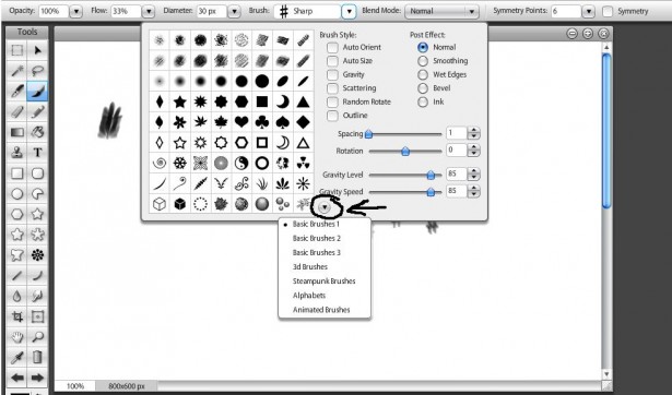 Представляю второй редактор. Он, в целом покруче предыдущего, так как есть поддержка 3D, много кистей. Интерфейс мультиязычный, но русского нет, хотя в принципе там всё понятно.